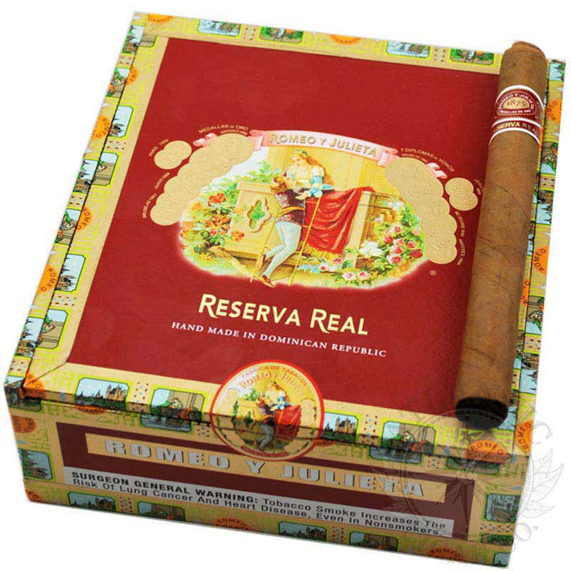 Available in many sizes, this exquisite cigar is certain to take America’s love affair with Romeo y Julieta to new levels of passion. The Romeo Y Julieta Reserva Real cigars are a creamy smoke with just enough strength.It’s a perfectly balanced and a great everyday smoke that can be enjoyed by the novice or veteran cigar smoker. Buy Romeo and Julieta Reserva Real cigars from Atlantic Cigar Company the Leader in Discount Cigars and start saving today!